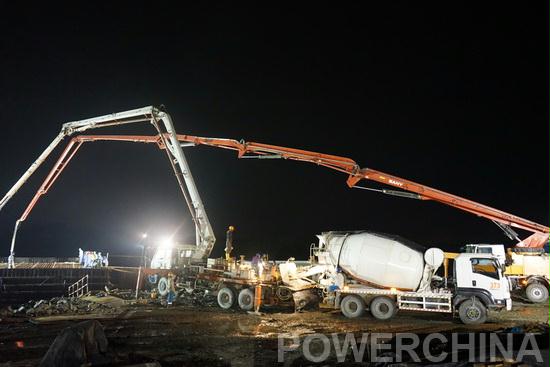 针对由于码头准证办理尚未完成造成的影响、材料进场困难及考虑到码头施工受涨落潮影响等问题,棉兰项目部群策群力,及时调整方案,确保服务码头按时完成投用。服务码头2号靠船墩的浇筑从昨晚开始,利用两台混凝土泵车进行施工,持续到凌晨两点多才完成浇注。自从吹响赶工的号角,服务码头进行赶潮施工,经常加班到凌晨两三点,有时甚至是通宵。虽然是赶工,但棉兰项目坚守安全质量底线,严把质量关,管理人员扎根施工现场查质量,一经发现问题,立即要求整改,甚至要求停工整顿,努力做到凡事有人负责、凡事有章可循、凡事有据可查及凡事有人监督;严控安全,贯彻“安全第一、预防为主、综合治理”的方针,坚持做到安全可控、在控与能控,即便水上作业再苦再热也必须穿救生衣进行施工。